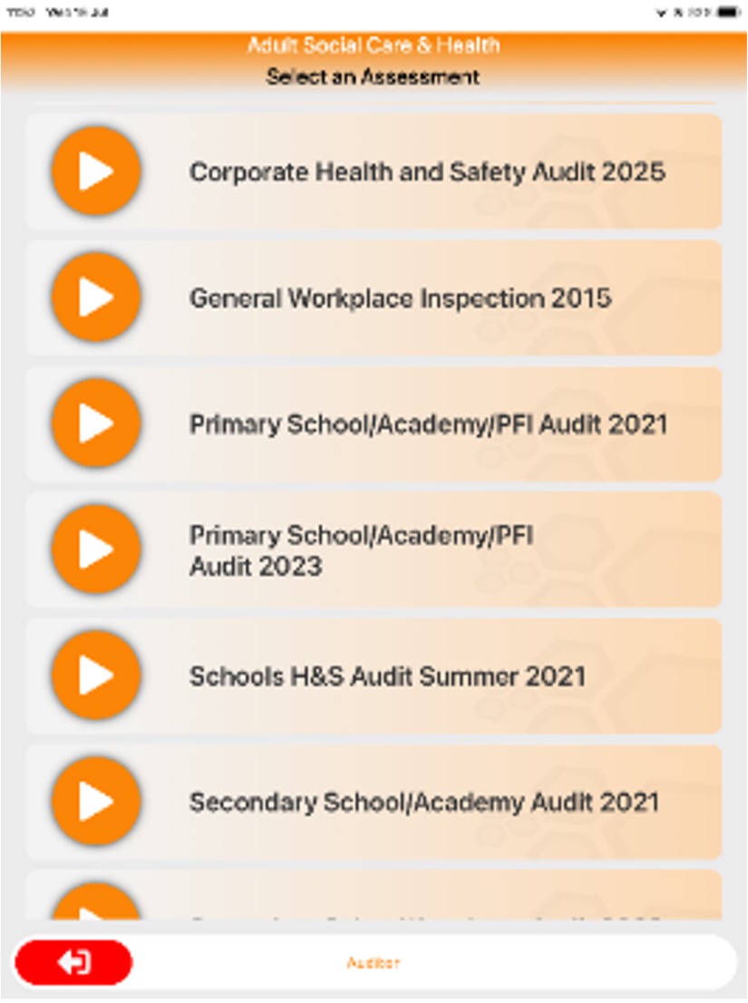 Auditing starts with just a few taps. The assessor simply selects the location from a predefined list within the app. Once a location is chosen, only the relevant audit types for that location are displayed, ensuring accuracy and efficiency.