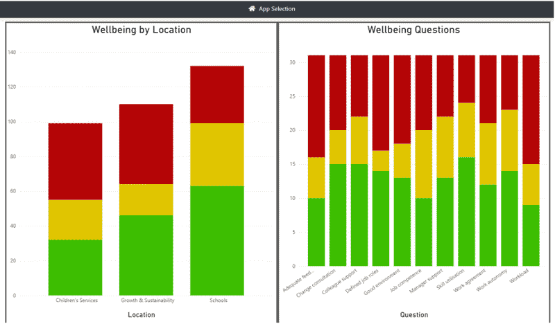 Drill down to get specific locations where wellbeing is at it lowest or drilldown by type of analysis to understand the individual types of wellbeing concerns.
